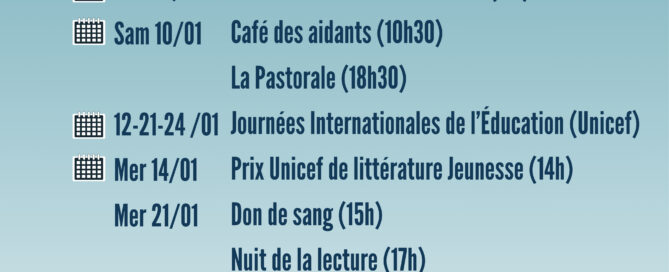 La Médiathèque de Saint-Zacharie célèbre les 10 ans du Prix UNICEF de littérature jeunesse À l’occasion de cette édition anniversaire, nous invitons les enfants à découvrir les droits de l’enfant à travers la littérature, le mercredi 14 janvier 2026, de 14h à 16h, à la Médiathèque Municipale. Cette édition spéciale met en lumière une thématique [...]
