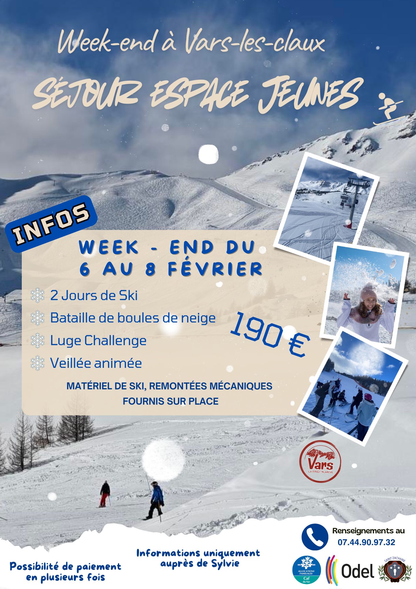 Voir l'image agrandie Vacances Espace Jeunes Vacances d’hiver – Weekend à Vars-les-Claux Mini séjour ski – Espace jeunes (11 à 17 ans) du 6 au 8 février 2026 Renseignements au : 07.66.67.97.85 (Places limitées) Par Lastrucci|2026-01-15T17:59:50+01:00janvier 15th, 2026|Actualités|Commentaires fermés sur Vacances Espace Jeunes Share This Story, Choose Your Platform! FacebookTwitterRedditLinkedInTumblrPinterestVkEmail À propos de l'auteur : Lastrucci Articles similaires Obligations Légales de Débroussaillement Galerie Obligations Légales de Débroussaillement Inond’Action – Opération de protection de l’habitat contre les inondations Galerie Inond’Action – Opération de protection de l’habitat contre les inondations Exposition « Empreintes sereines » Galerie Exposition « Empreintes sereines » Déchets’tri Mobile – Calendrier 2026 Galerie Déchets’tri Mobile – Calendrier 2026 Café des aidants – Calendrier 1er semestre Galerie Café des aidants – Calendrier 1er semestre
